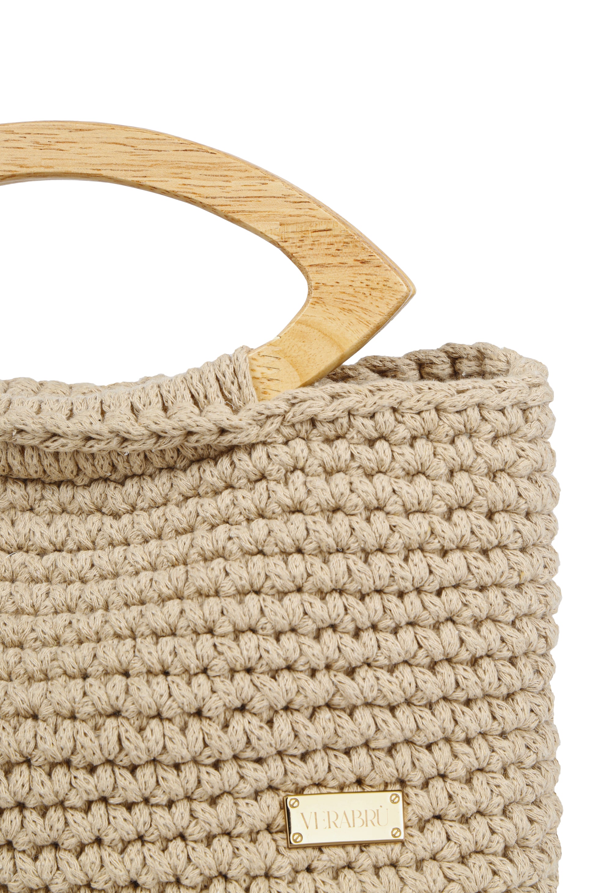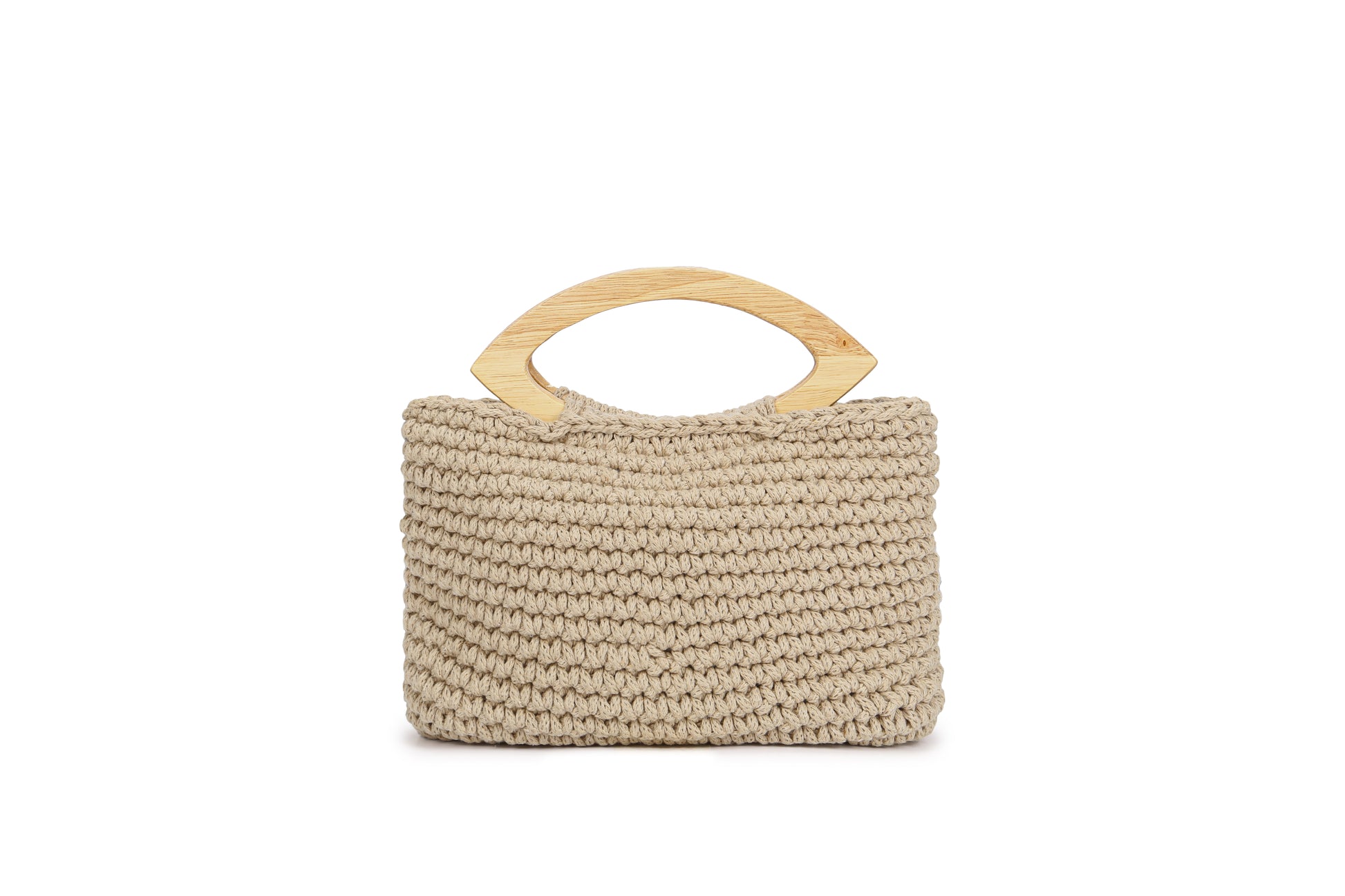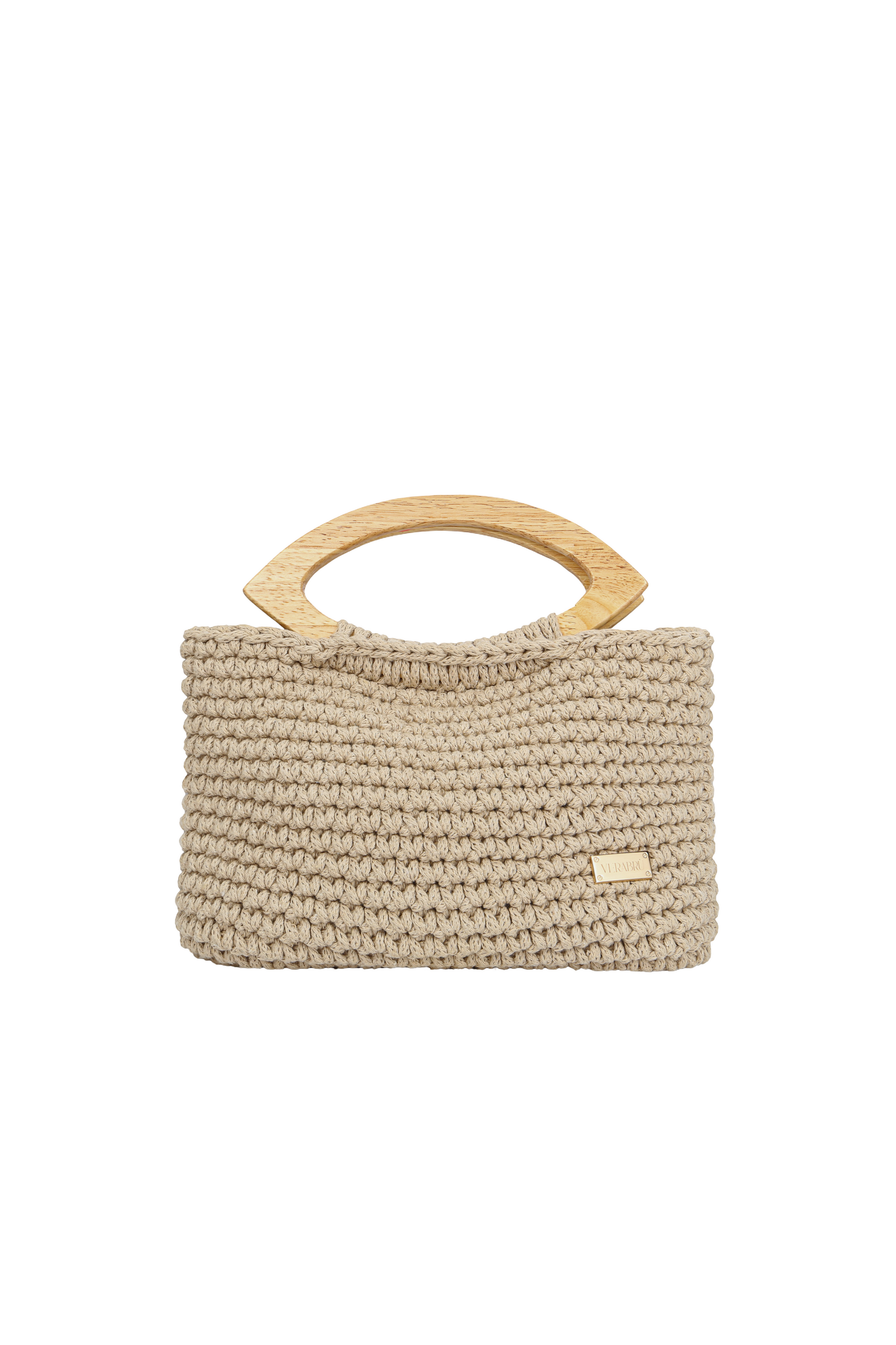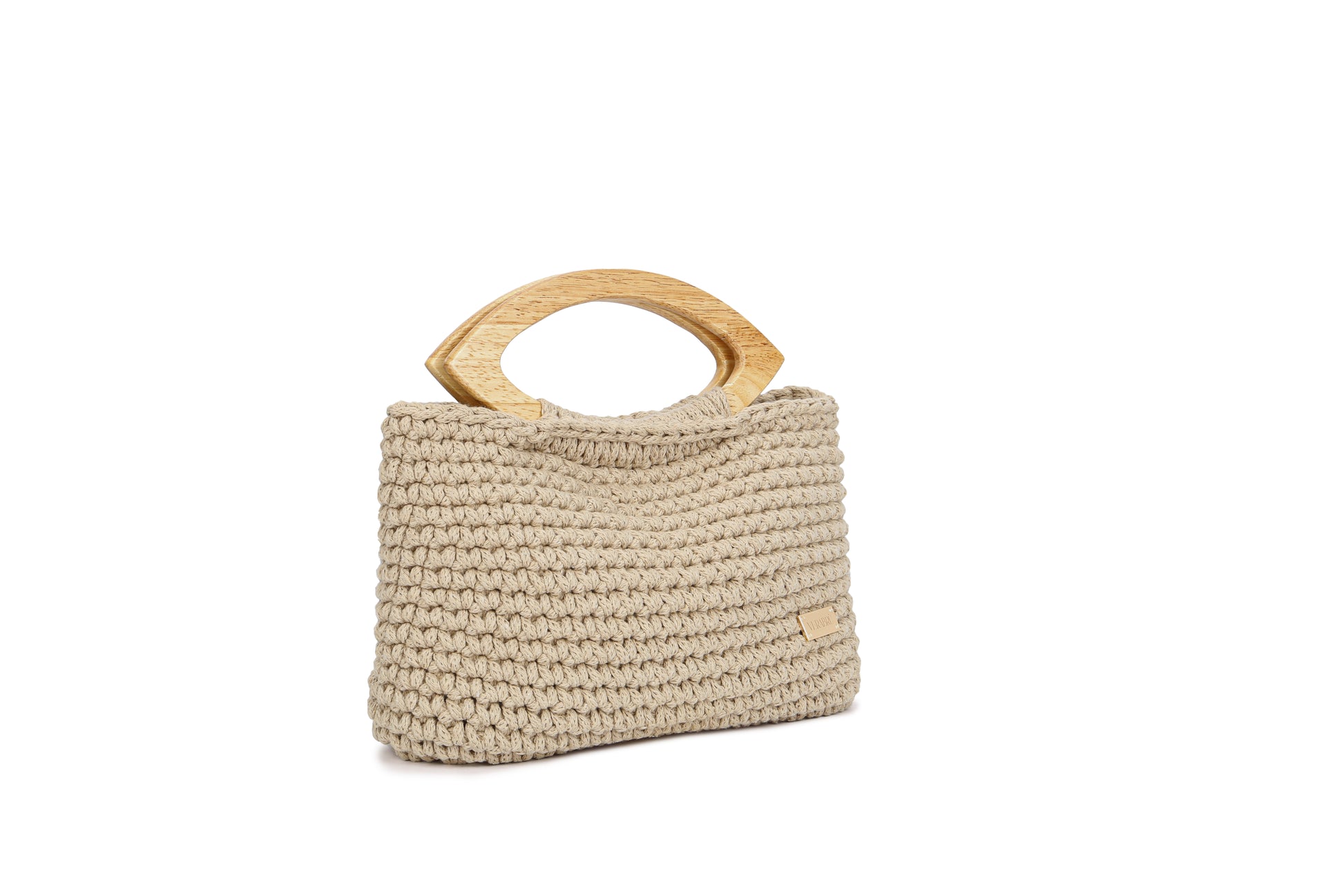 De tono arena y asas de madera, combina estructura firme y elegancia natural.
